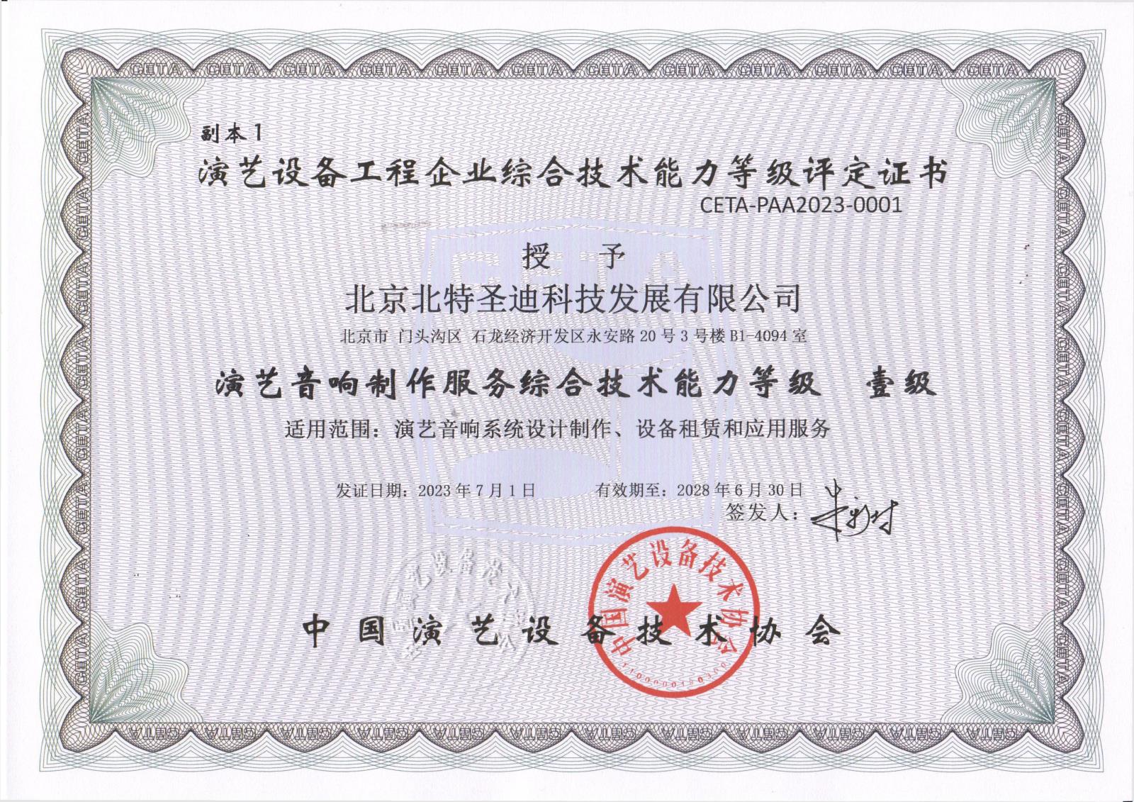 2016中國演藝設(shè)備技術(shù)協(xié)會成立二十五周年新銳企業(yè)榮譽證書