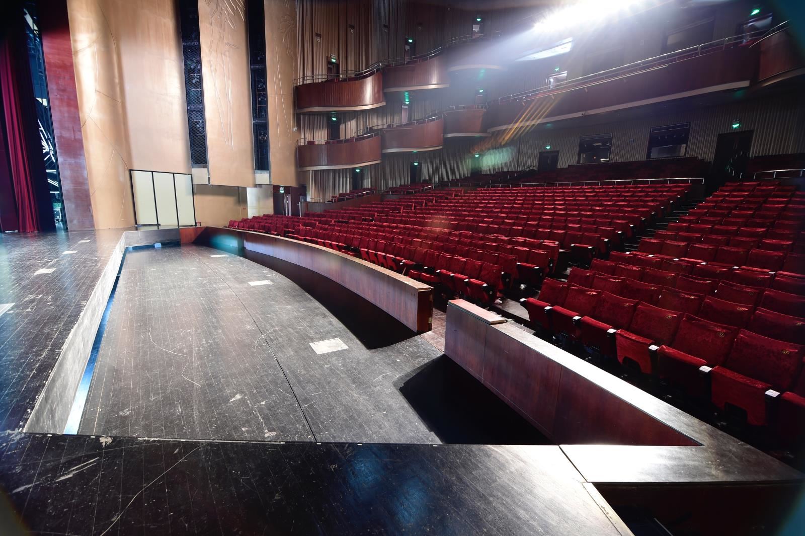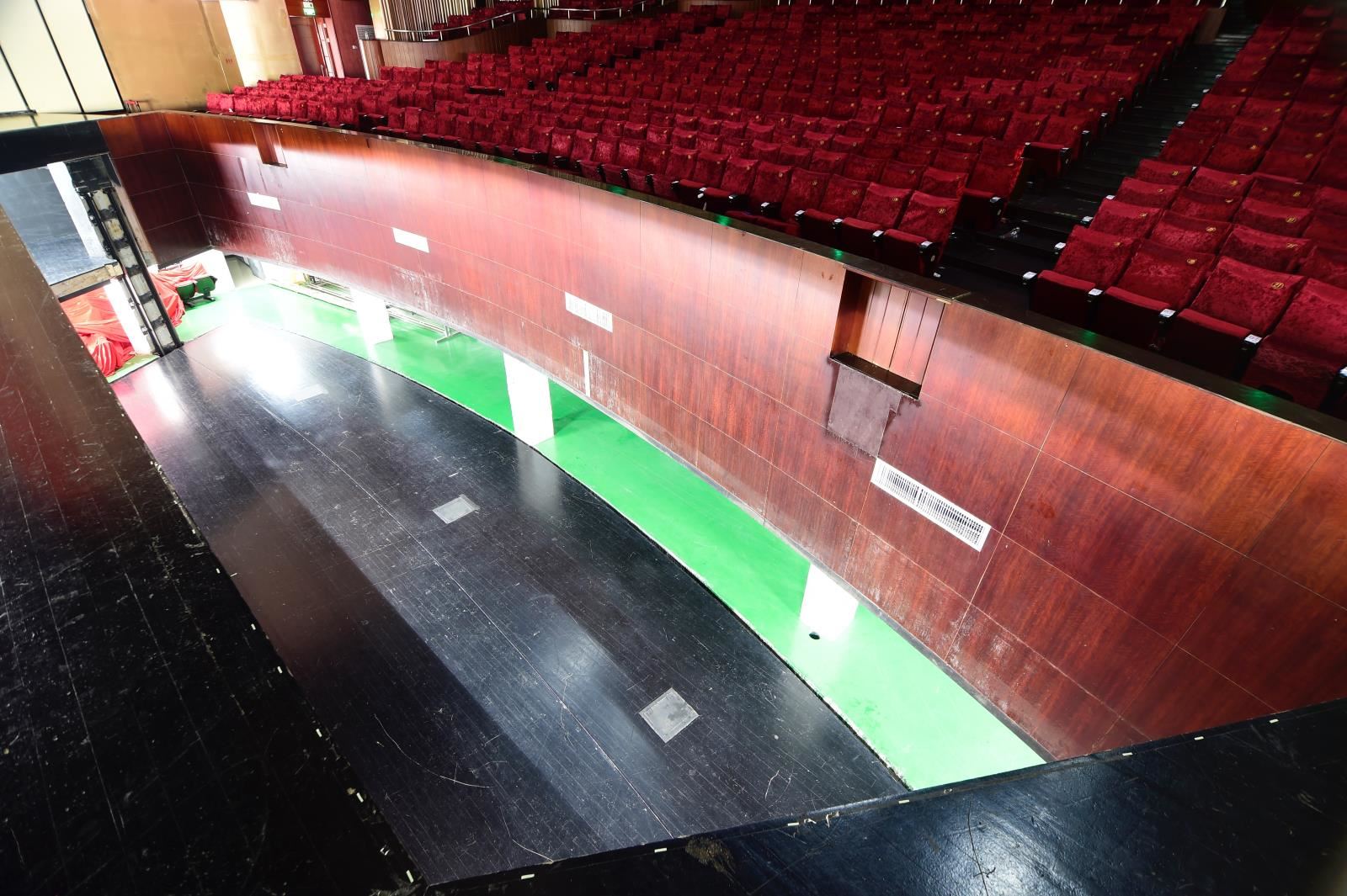 樂池升降臺位于臺口外樂池基坑中并與舞臺橫軸平行。