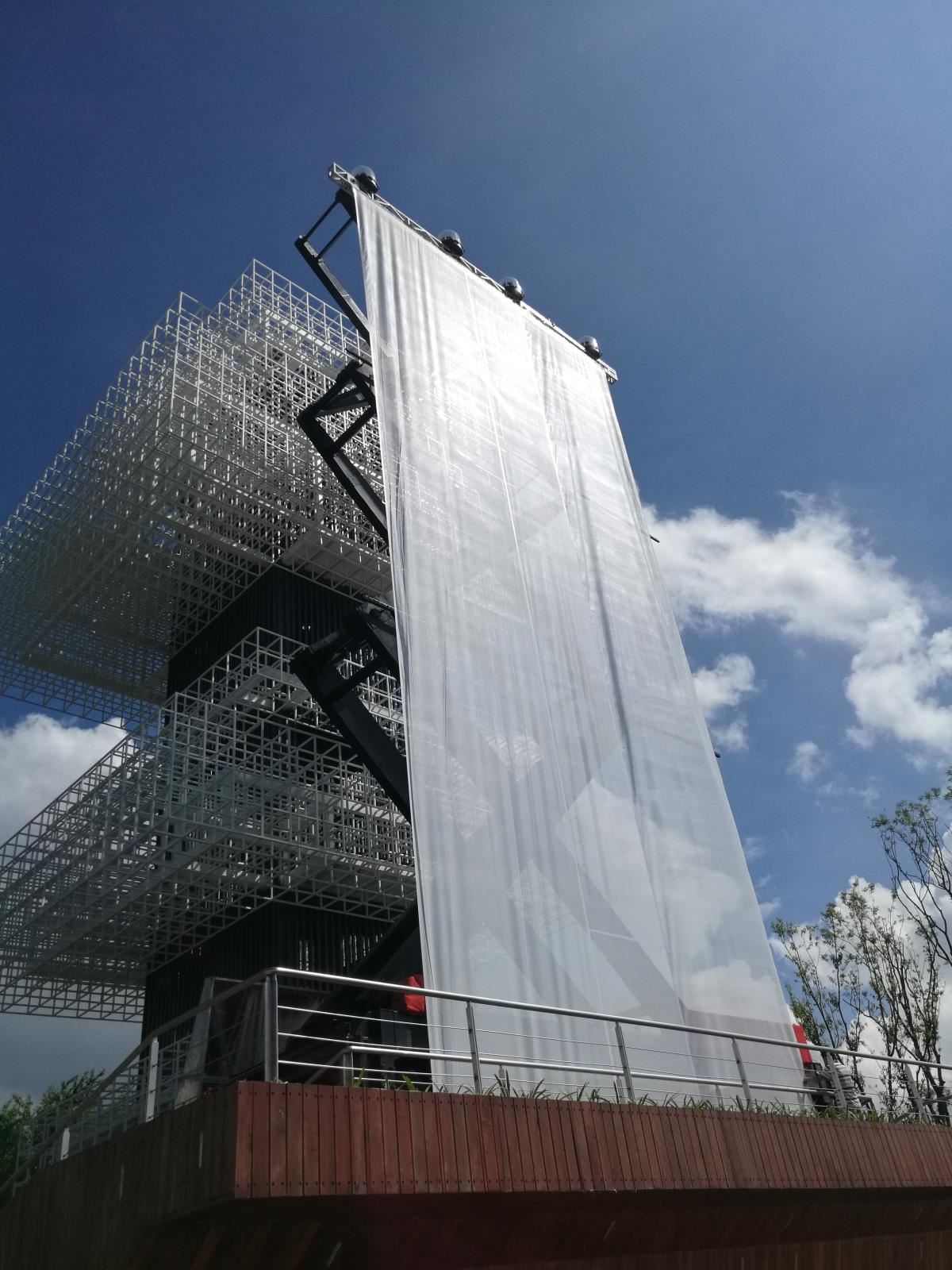 高難度淺基坑大行程無導(dǎo)向大型戶外升降巨型投影框架系統(tǒng)