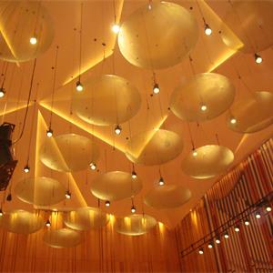 反聲板主要由升降+傾斜卷揚吊掛系統、鋼結構(或鋁合金結構)板體框架、板體、布置在板體或框架上的演奏照明燈具組成,以滿足演出時對廳堂音質及該區域的燈光要求。